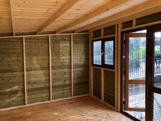 Superior quality heavy duty loglap building. Ideally suited for people who want a maintenance free, long lasting garden Summerhouse