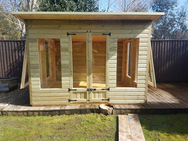 Superior quality heavy duty loglap building. Ideally suited for people who want a maintenance free, long lasting garden Summerhouse